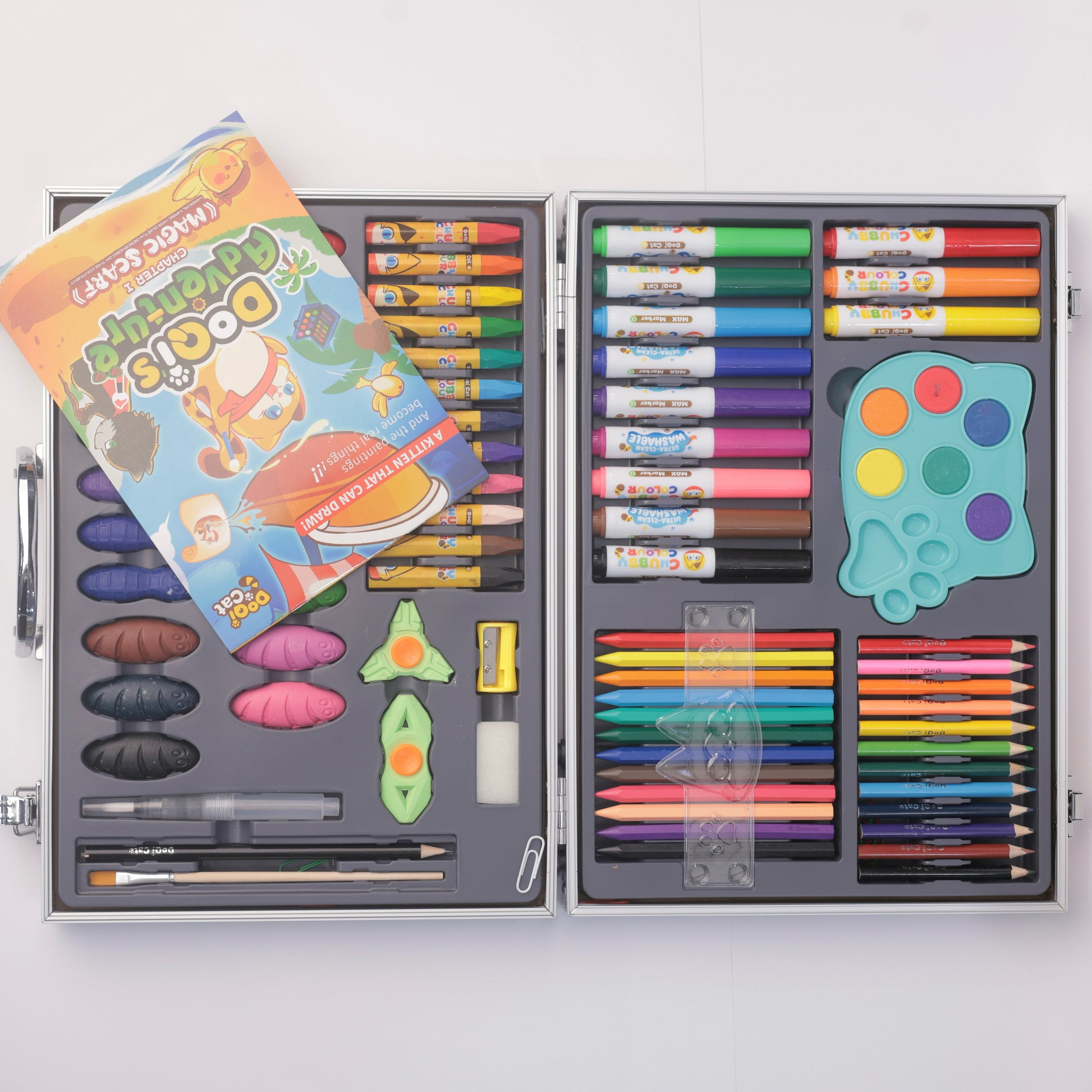 تضم 108 قطعة متنوعة من أدوات التلوين والرسم داخل حقيبة أنيقة وسهلة الحمل، مثالية للأطفال من سن 3 سنوات فما فوق.